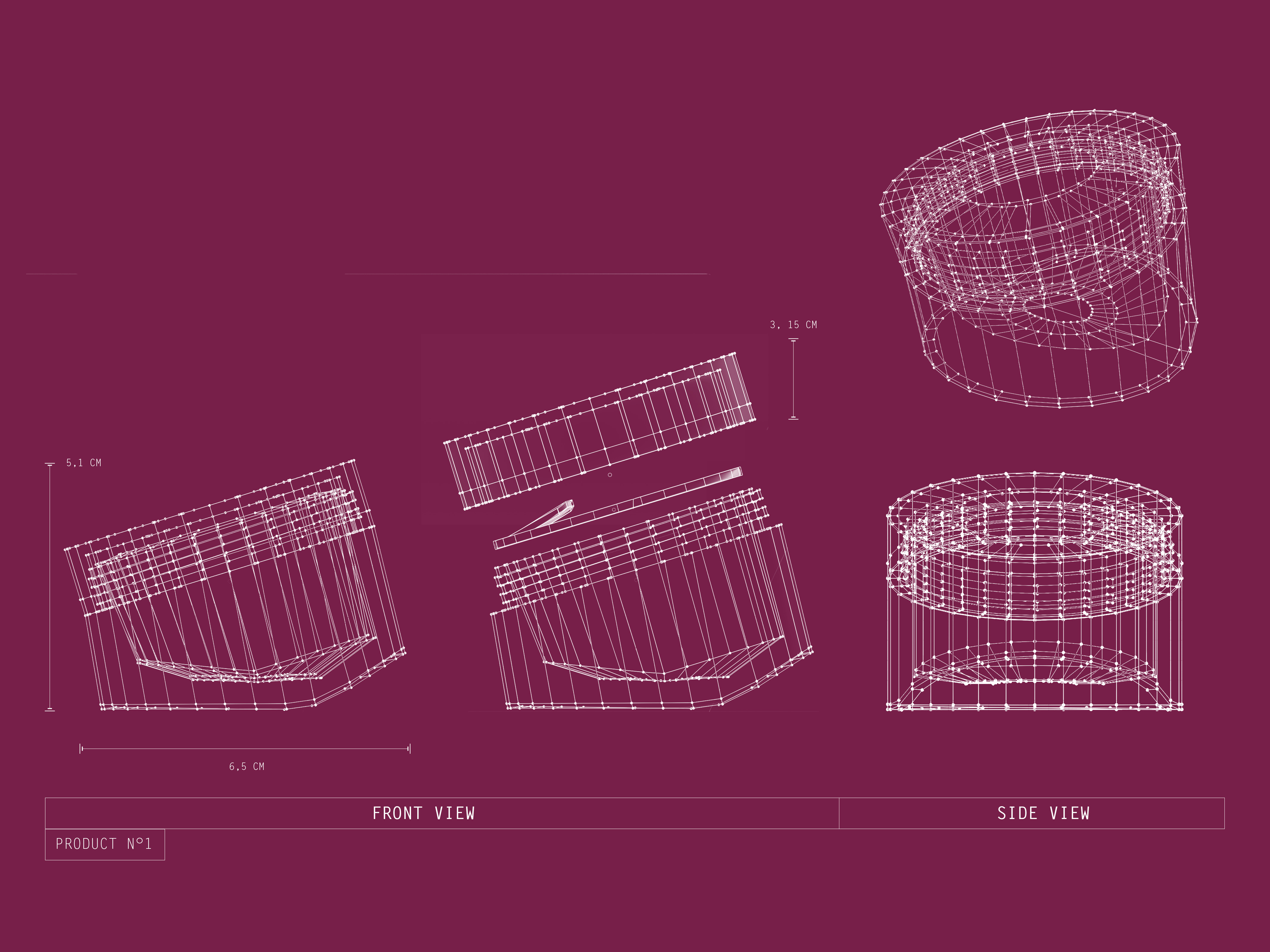 Expérimentations 3D pour des produits skincare. Le principe du pack est incliné, se démarquant ainsi des packaging classiques.